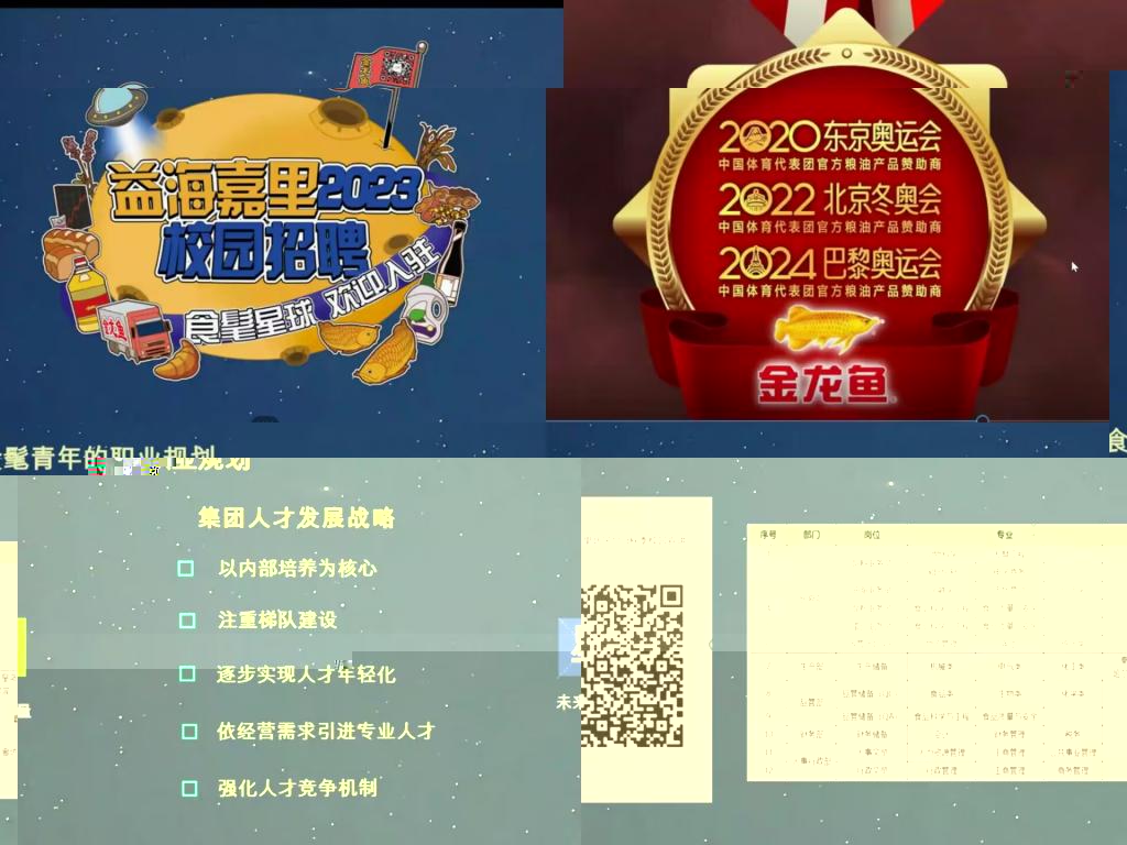 為了給同學更多的實習和就業的機會,同時也為了幫助即将進入社會的大學生明确自己求職的目标和方向,益 海嘉裡金龍魚糧油食品股份有限公司于11月3日下午2點舉辦了線上“校園招聘宣講會”。